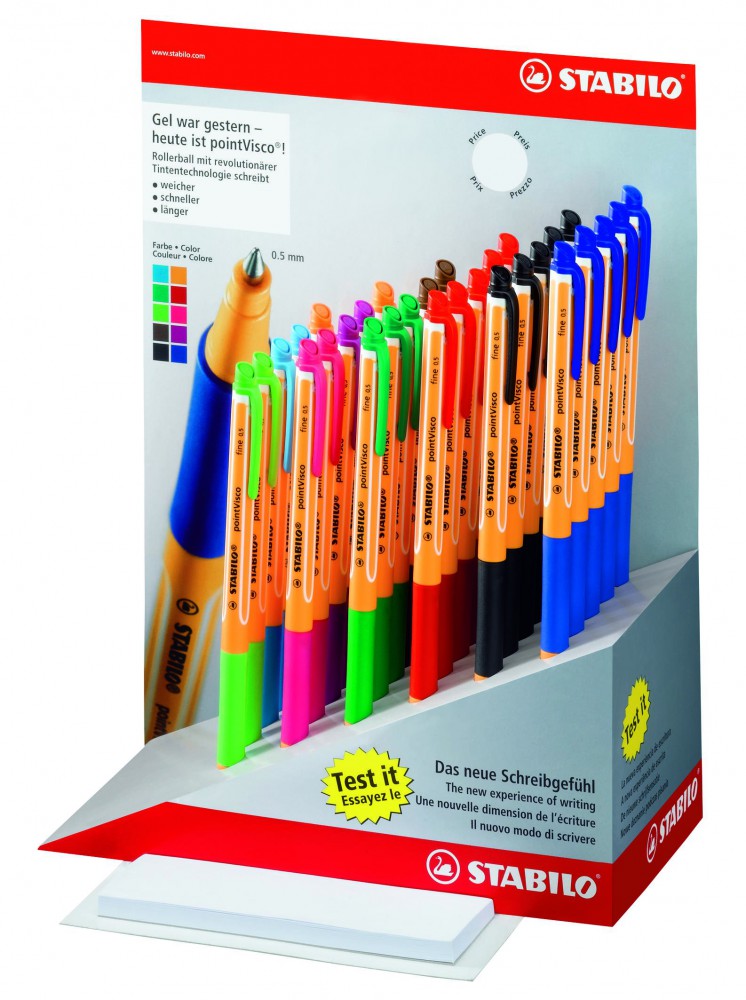РУЧКА ГЕЛЕВАЯ STABILO point Visco 30ШТ В ДИСПЛЕЕ, ЦВЕТ ЧЕРНИЛ АССОРТИ 0,5ММ0