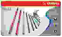 Набор STABILO Pen 68 включает в себя 24 цветных фломастера в картонной упаковке. Корпус фломастеров является аналогом ручки Point 88 (шестигранный, пластиковый). Наконечник износостойкий и хорошо сохраняет свою форму при длительном использовании. Чернила на водной основе и безвредны.